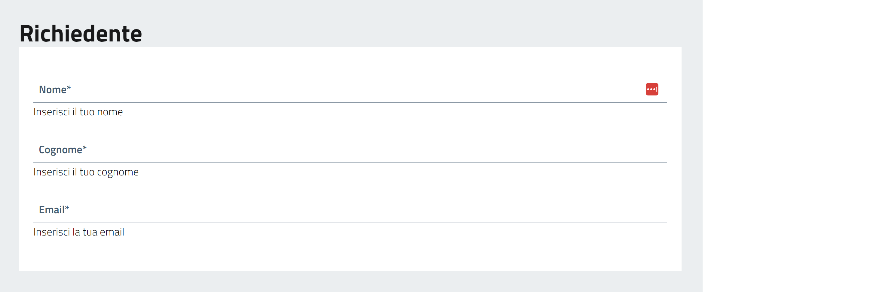 Una volta cliccato il pulsante si aprirà il Form di Compilazione della richiesta diviso in due sezioni: